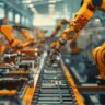 Factory smart industry robot arms digital production